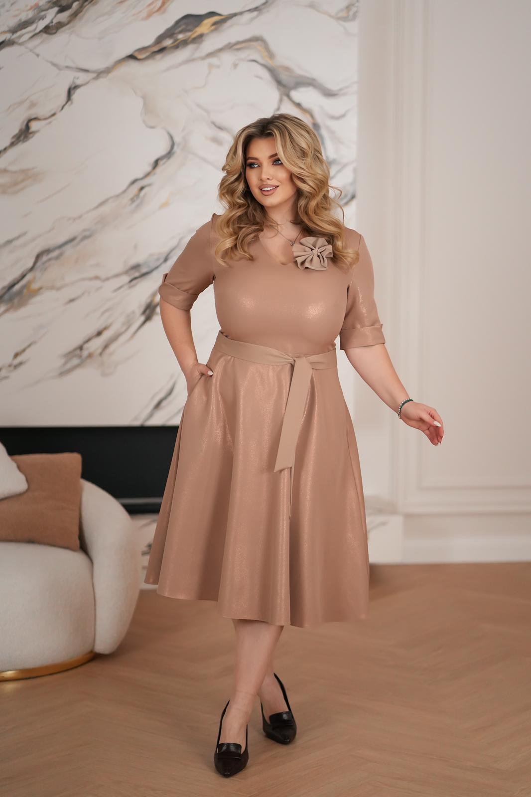 Materiał, z którego wykonano sukienkę, jest przyjemny w dotyku i starannie wykończony, co sprawia, że całość prezentuje się niezwykle stylowo i estetycznie. Dopracowane detale nadają jej wyjątkowego charakteru, a uniwersalny design sprawia, że doskonale sprawdzi się zarówno na co dzień, jak i podczas bardziej wyjątkowych okazji.